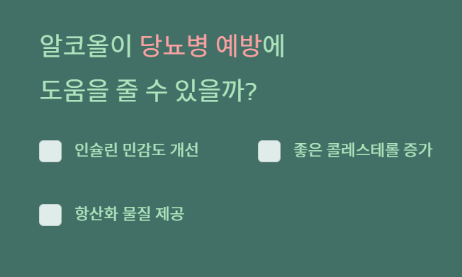 Q. 알코올이 당뇨병 예방에 효과가 있나요?