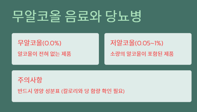 그러나 무알코올 음료도 칼로리와 당 함량이 높을 수 있으므로, 반드시 영양 성분표를 확인하세요. 과도한 섭취는 혈당 조절에 악영향을 미칠 수 있습니다.